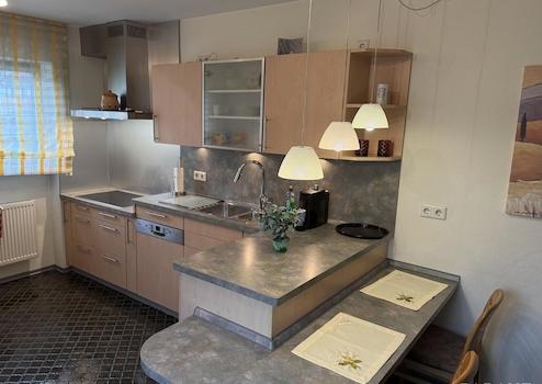 Die moderne Einbauküche bietet reichlich Platz für kulinarische Kreativität und fügt sich harmonisch in den Wohnbereich ein.