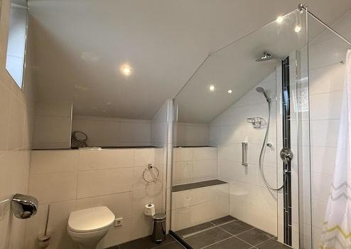 Im Obergeschoss erwarten Sie ein top modern ausgestattetes Tageslichtbad mit großzügiger Dusche, zwei großzügige Schlafzimmer, die jeweils über einen direkten Zugang zu den beiden sonnigen Balkonen verfügen. Zusätzlich steht Ihnen hier ein zweites, gepflegtes, etwas kleineres Bad zur Verfügung, ideal für Gäste oder die Familie.