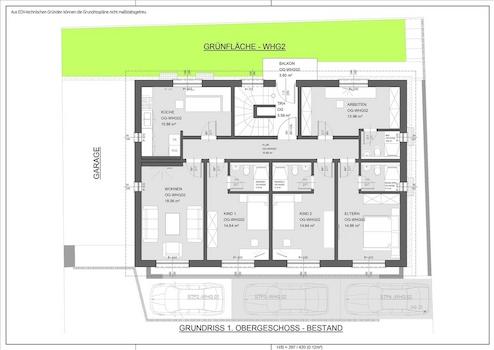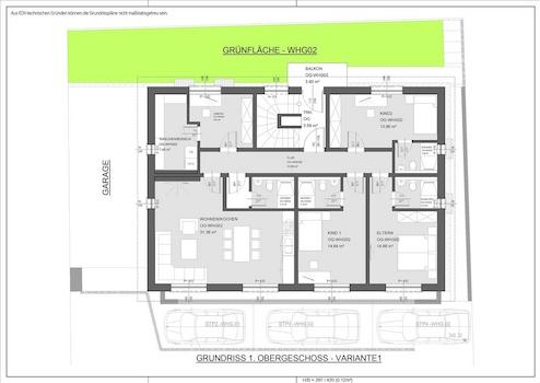 * großer Wohn- und Kochbereich, zwei Kinderzimmer je mit einer Dusche und WC, Schlafzimmer mit Dusche und WC, Büro/Arbeitszimmer, Hauswirtschaftsraum, Flur, Balkon, separates Gäste WC