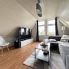 Wohnung 2 im Obergeschoss (ca. 87 m²): Zwei Zimmer, Küche, Diele, Bad, Dachterrasse