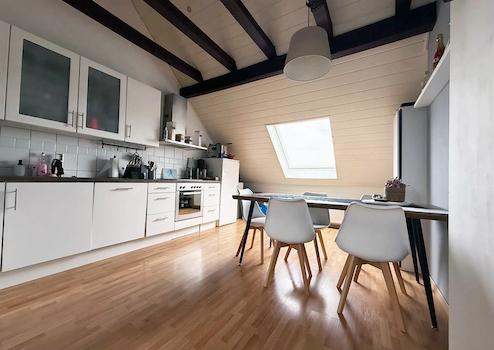 Wohnung 3 im Dachgeschoss, Wohnung III (ca. 54 m²): Zwei Zimmer, Küche (mit Essbereich), Diele, Bad