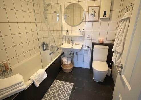Modernes Badezimmer im stilvollen Schwarz-Weiß-Design, Keramik komplett erneuert