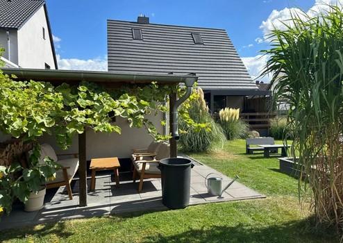 Gepflegter, pflegeleichter Garten, ideal für alle, die wenig Aufwand, aber viel Atmosphäre wünschen.