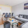 Die Küche ist mit einer funktionelle Einbauküche im weißen Dekor mit ausreichend Ober- und Unterschränken und den notwendigen Elektrogeräten ausgestattet. Ebenfalls befindet sich hier Platz für Waschmaschine und Geschirrspüler.