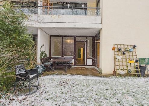 Das Herzstück der Wohnung ist das helle Wohnzimmer mit großer Fensterfront und direktem Zugang zur Terrasse. Dank der Süd-Ost-Ausrichtung des Gartens ist der Wohnbereich bereits am Morgen lichtdurchflutet. Der ruhig gelegene Garten präsentiert sich als sonnige, grüne Oase – perfekt zum Entspannen, Frühstücken im Freien oder einfach zum Abschalten.