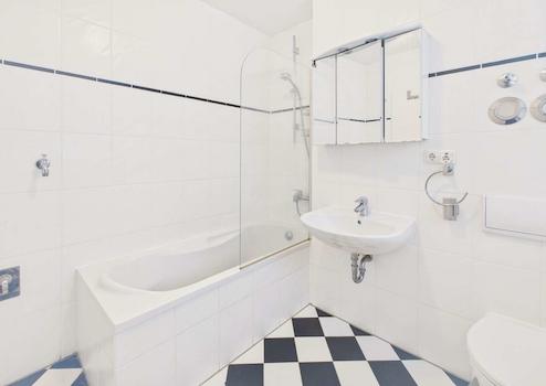Das Tageslichtbad ist mit Fenster, Badewanne und praktischem Waschmaschinenanschluss ausgestattet und bietet damit komfortable Funktionalität im Alltag. Die Küche befindet sich in einem separaten Raum, sodass Kochgerüche nicht in den Wohnbereich gelangen und Sie hier ganz in Ruhe kochen können.