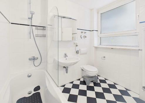 Tageslichtbad mit Fenster, Badewanne und Waschmaschinenanschluss