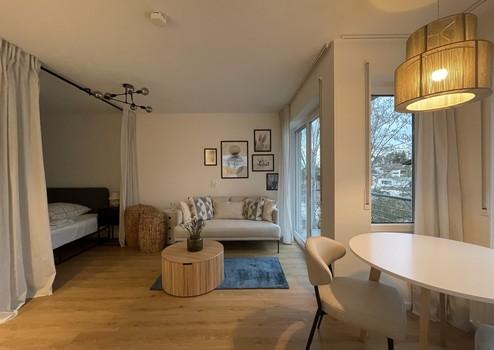 Modern möblierte, lichtdurchflutete und ruhig gelegene 1-Zimmer Wohnung mit Balkon in Reutlingen (Stadtteil Betzingen), 4 Minuten bzw. 1,8km vom Robert Bosch Werk entfernt.