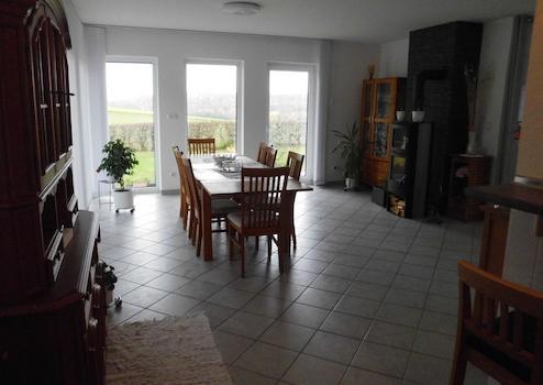 Der gepflegte Zustand des teilunterkellerten Hauses garantiert Ihnen ein sofort einsatzbereites Zuhause, das zum Entspannen und Wohlfühlen einlädt. Der einladene Kamin im Wohnzimmer schafft eine gemütliche Atmosphäre an kalten Winterabenden und wird schnell zum Herzstück Ihrer neuen Wohnlandschaft. Die Fliesen im gesamten Haus verleihen nicht nur einen modernen Look, sondern sind auch pflegeleicht, langlebig und tragen zu einem gesunden Raumklima bei.und ideal für Allergiker, da sie Staub und Schmutz nur schwer festhalten.