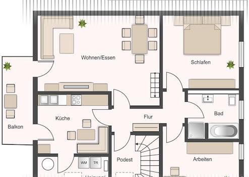 Die anspruchsvolle 5-Zimmer-Maisonette-Wohnung wird im Januar 2026 bezugsbereit sein und präsentiert sich mit einer hochwertigen Innenausstattung. Elegantes Laminat wird auf den Böden verlegt das Badezimmer mit modernen Fliesen ausgestattet. Vom großzügigen Wohnbereich und der Küche aus gelangt man auf den geräumigen Balkon. Die große Küche bietet genügend Platz für einen Essbereich. Das Tageslichtbad ist zusätzlich mit einer Badewanne und einer Dusche ausgestattet. Ein Wirtschaftsraum schafft zusätzlichen Stauraum und bietet Platz für Waschmaschine, Trockner und Regale. Über eine Treppe gelangen Sie in die obere Etage, wo Sie noch zwei weitere Schlafzimmer erwarten. Zu der Wohnung gehört ein eigener Gartenanteil dazu, den Sie beliebig nutzen können.