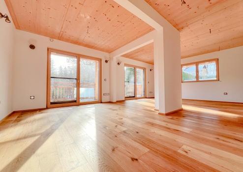 Als Bodenbeläge sind in den Wohnräumen Eichenparkettdielen und hochwertige Fliesen in den Bädern und im Küchenbereich verbaut worden. Die Fußbodenheizung und das Warmwasser wird durch eine moderne Erdwärmepumpe betrieben. Eine Photvoltaikanlage mit 4 kWp unterstützt den Betrieb der Erdwärmepumpe und erwirtschaftet zusätzlich Erlöse. Die hochwertigen Holzfenster sind mit Jalousien und teilweise mit Insektengittern ausgestattet. Die Elektroinstallation wurde mit einem intelligenten KNX-Bussystem ausgerüstet. Das mit einer hochwertigen Holzständerbauweise - mit TOP Energieeffizienz und Raumklima - erstellte Haus unterzog sich erfolgreich einem Blower-Door-Test.