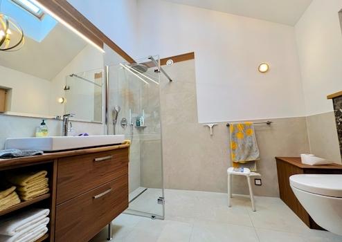Dieses exklusive Neubau-Null-Emissionshaus auf 516m² Grund in ruhiger Wohnlage besteht aus zwei abgeschlossenen Wohnungen im EG oder OG, als auch einer Untergeschossebene mit gehobener Wohnraumqualität. Das Entree bietet Garderobeschränke für beide Wohnungen und leitet über in das repräsentative Treppenhaus. Insgesamt stehen Ihnen ca. 175m² Wohn- und ca. 341m² Gesamtnutzfläche (lt.Energieausweis) zur Verfügung. Das Haus ist mit einem Aufzug ausgestattet und ist somit weitgehend barrierefrei.