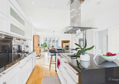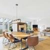 Im Inneren öffnet sich eine Atmosphäre voller Helligkeit und Wohngefühl. Die großzügige Diele führt direkt in den weitläufigen Wohn- und Küchenbereich – ein offenes Raumkonzept von beeindruckender Weite. Bodentiefe Fenster, warmes Holz und harmonische Linien schaffen einen Mittelpunkt, der Leben und Genuss mühelos verbindet. Die hochwertige Küche mit großer Kochinsel lädt zu gemeinsamen Momenten ein, während der Blick in den Garten Ruhe und Weite vermittelt.