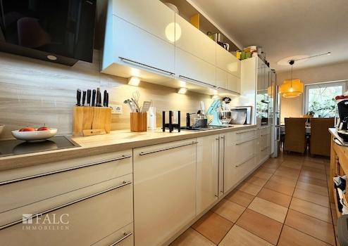 Die Einbauküche ist erst fünf Jahre alt und überzeugt mit funktionaler Ausstattung und zeitgemäßem Design. Für beste Arbeitsbedingungen im Home Office sorgt eine extra LAN-Box, die eine stabile und schnelle Internetverbindung in den Wohnräumen garantiert.