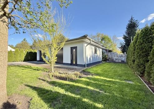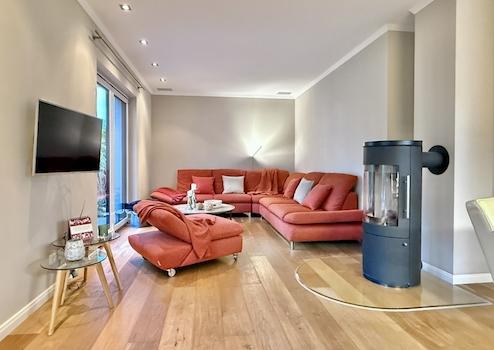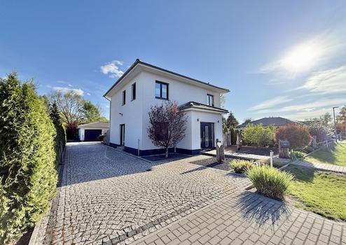 Diese moderne Stadtvilla in Sachsenhausen bei Oranienburg bietet auf ca. 144 m² Wohnfläche ein komfortables Zuhause für Familien. Das großzügige Erdgeschoss ist offen gestaltet und verbindet Küche, Essbereich und Wohnzimmer zu einem lichtdurchfluteten Wohnbereich. Ein Kaminofen sorgt hier für eine gemütliche Atmosphäre. Die gesamte Immobilie ist mit Fußbodenheizung ausgestattet, die durch eine effiziente Gasbrennwerttherme mit Solarthermie von Junkers betrieben wird.
