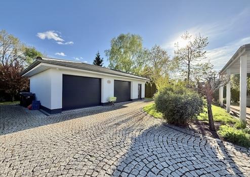Ein besonderes Plus dieser Immobilie ist die massive Doppelgarage mit elektrischem Sektionaltor. Sie bietet ausreichend Platz für zwei Fahrzeuge sowie zusätzlichen Stauraum für Fahrräder, Gartengeräte oder eine kleine Werkstatt.