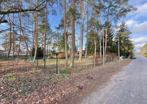 Das Grundstück ist größtenteils eingezäunt, lediglich auf einer Seite ist eine Ergänzung erforderlich. Mehrere Kiefern auf dem Grundstück sorgen für ein charmantes, natürliches Ambiente und verleihen dem Grundstück einen besonderen Charakter.