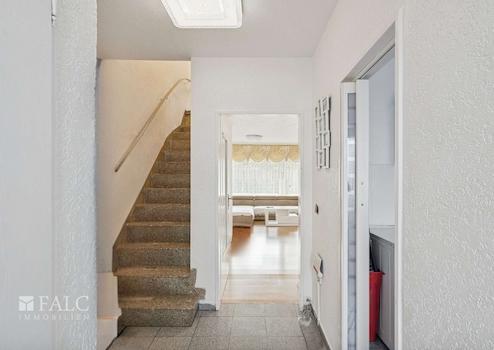 Beim Betreten dieser großzügigen Maisonette-Wohnung mit 101 m² Wohnfläche in Hochparterre werden Sie von einem einladenden Flur empfangen, der den Zugang zu den verschiedenen Bereichen des Erdgeschosses ermöglicht. Direkt zur Linken befindet sich das Gäste-WC, ein praktisches Feature für Besucher.