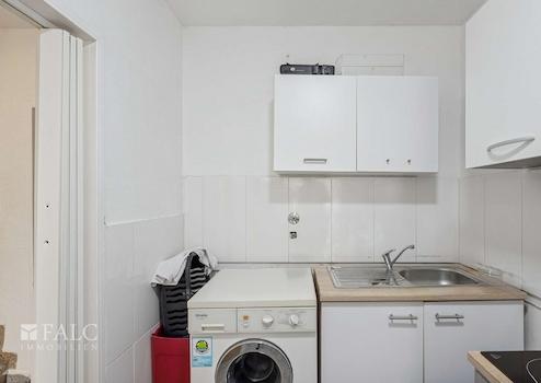 Die Küche ist kompakt und funktional gestaltet, ausgestattet mit ausreichend Stauraum. Sie bietet alles, was Sie für die Zubereitung von Mahlzeiten benötigen.