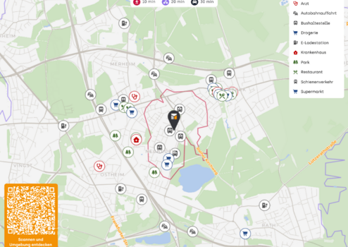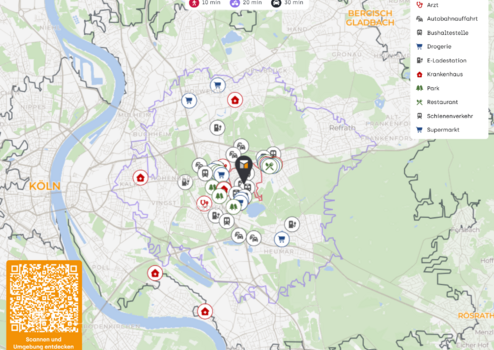 Die Immobilie befindet sich in einer gut angebundenen Lage in Köln, die sowohl für Familien als auch für Berufstätige attraktiv ist. Die Anbindung an den öffentlichen Nahverkehr ist hervorragend, mit mehreren Bushaltestellen in unmittelbarer Nähe, darunter die Haltestelle Europaring, die nur wenige Gehminuten entfernt ist. Die Tram-Station Merheim ist ebenfalls schnell erreichbar und bietet eine bequeme Verbindung in die Innenstadt.