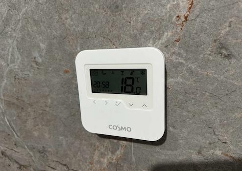 In Kombination mit hochwertigem Parkettboden und modernen Bodenfließen, schafft die Fußbodenheizung ein wohliges Raumgefühl. Diese ist in jedem Raum individuell regelbar.