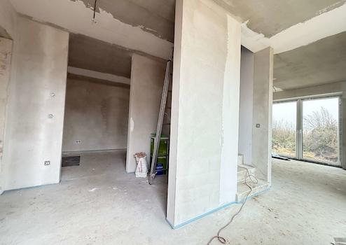 Der offen gestaltete Wohn-, Ess- und Kochbereich bildet das Herzstück des Hauses. Große Fensterflächen lassen reichlich Tageslicht herein und schaffen eine freundliche, wohnliche Atmosphäre – perfekt für Familienleben, gesellige Abende oder entspannte Stunden. Die Raumaufteilung wurde so gestaltet, dass jeder Quadratmeter sinnvoll genutzt wird. Die bodentiefen Elemente ermöglichen nicht nur lichtdurchflutete Räume, sondern auch den direkten Zugang zur Terrasse und zum Garten, wodurch Innen- und Außenbereich harmonisch ineinandergreifen. Durch zwei Vollgeschosse profitieren Sie zudem von einer echten Wohnraumnutzung ohne Schrägen – ideal für große Möbel, kreative Gestaltungsideen oder die flexible Planung von Kinderzimmern und Arbeitsbereichen.