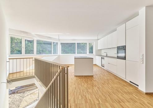 In exponierter, erhöhter Lage fügt sich das Objekt natürlich in seine grüne Umgebung ein und bietet seinen Bewohnern einen beeindruckenden Blick ins Tal und grüne Wälder.