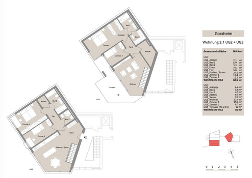 Das Mehrfamilienhaus umfasst 5 Wohnungen zwischen 88 m² - 168 m² sowie 8 Stellplätze und 2 Garagen.