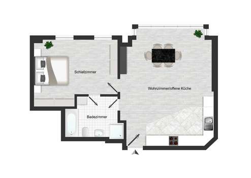 – Zwei Bäder: 1x Tageslichtbad mit Dusche, 1 x innenliegendes Bad mit Dusche und Wanne