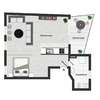 Der Aufzug bringt Sie bequem bis in die 6. Etage, wo sich der erste Teil der Wohnung befindet. Herzstück ist der großzügige Wohnbereich mit bodentiefen Fenstern und Rollläden, die nicht nur für eine lichtdurchflutete Atmosphäre sorgen, sondern auch einen atemberaubenden Panoramablick über die Stadt eröffnen. Hier ist genügend Platz für eine Sofalandschaft, einen Esstisch und mehr. Eine Einbauküche ist bereits integriert. Abgerundet wird diese Ebene durch ein Schlafzimmer sowie ein Badezimmer mit Dusche und Badewanne, von welchem aus Sie sowohl das Schlaf- als auch das Wohnzimmer erreichen.