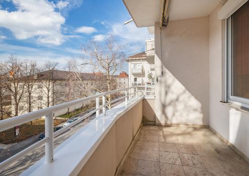 Das Objekt befindet sich im 3. Obergeschoss eines Mehrparteienhauses. Der westliche Balkon, direkt an die Küche angrenzend, erstreckt sich über ca. 8 m² und lädt zum Entspannen ein. Ein zweiter Balkon, zur Loggia ausgebaut, ist über das Wohnzimmer zugänglich und bietet einen begrünten Blick in den ruhig gelegenen Innenhof.
