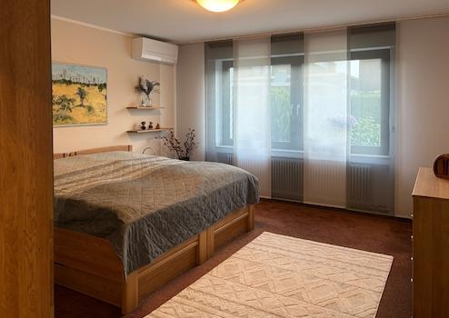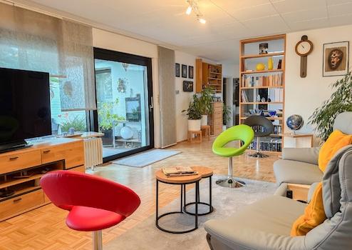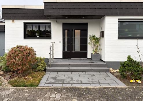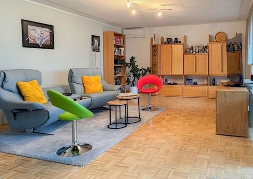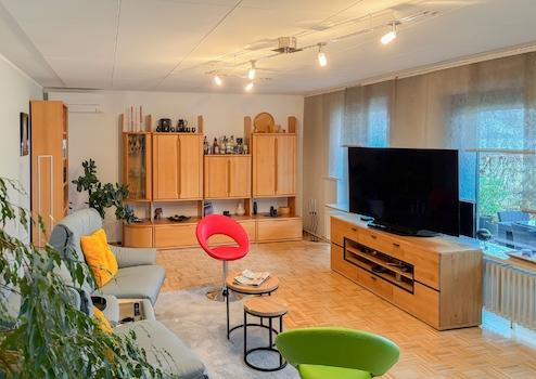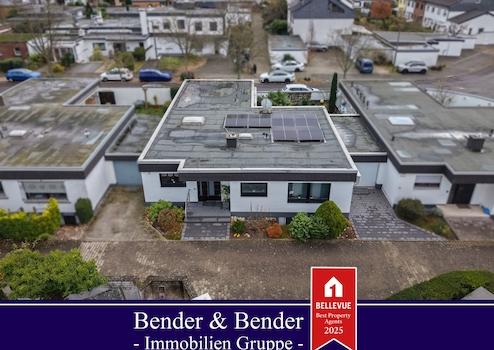Dieser Flachdachbungalow in ausgezeichnetem Zustand begeistert vom ersten Moment an: top gepflegt, modern ausgestattet und mit einem Wohngefühl, das sofort überzeugt. Auf ca. 127 m² erwartet Sie ein heller, großzügiger Wohn-/Essbereich mit Klimaanlage und direktem Zugang zur sonnigen Terrasse – perfekt für entspannte Stunden im Freien. Die Küche ist ideal angebunden, bis zu drei behagliche Schlafzimmer sorgen für Rückzugsmöglichkeiten; eines davon mit Klimaanlage und eigenem Bad. Ein zusätzliches Gästezimmer und ein Gäste-WC runden das Erdgeschoss ab. Der uneinsehbare Garten ist ein echtes Highlight: pflegeleicht, liebevoll angelegt und ein Ort voller Ruhe. Im beheizten Kellergeschoss eröffnet sich ein weiteres Plus: ein großzügiges Hobby- bzw. Billardzimmer, ein Gästezimmer, ein Hauswirtschaftsraum sowie eine moderne Saunalandschaft mit Dusche, WC und direktem Terrassenzugang – ideal für Wellness zu Hause. Eine vor 2 Jahren gestrichene Fassade, die 5-kWp-PV-Anlage (Bj. 2023, Einspeisung ), Garage und Stellplatz unterstreichen den hervorragenden Gesamtzustand. Ein Haus, das sofort begeistert – stilvoll, komfortabel und bereit für seine neuen Bewohner.
