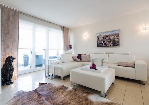 Komplett möblierte Wohnung, d.h. inkl. Bettwäsche , Handtücher Geschirr etc. Großzügiges, helles Wohnzimmer mit weißer Ledercouch, Flatscreen-TV in Wohnzimmer, offene vollausgestattete Küche, Schlafzimmer mit großem Einbaukleiderschrank und Arbeitsplatz. Großzügiges Tageslichtbad mit Wanne und begehbarer, großen Dusche.