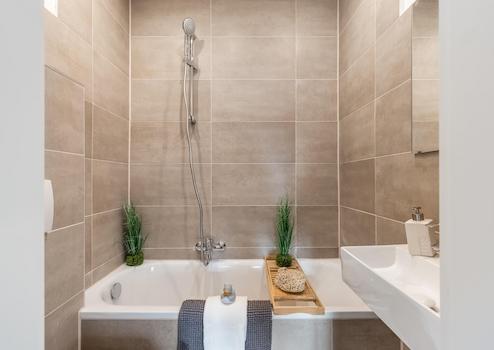 -saniertes Badezimmer mit Badewanne