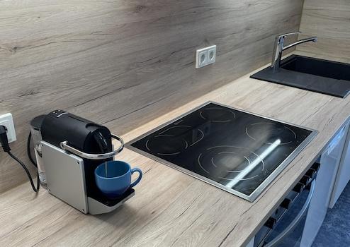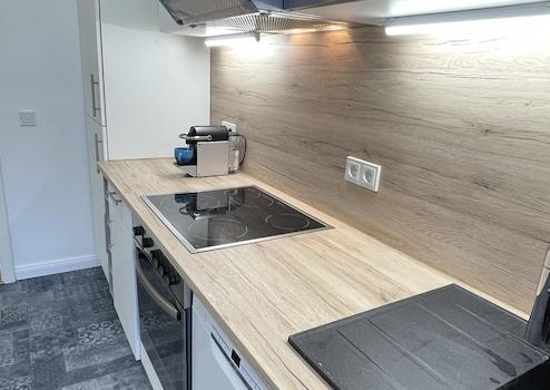 -die Küche verfügt über alle Geräte die man sich wünscht; Kühlschrank mit Gefrierfach, Bachofen und Cerankochfeld, Geschirrspüler sowie eine Mikrowelle
