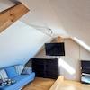 Im Obergeschoss befindet sich ein großzügiger Arbeitsbereich, kleiner Fitnessbereich, ein Gästesofa sowie eine Abstellkammer. Es besteht Ausbaupotenzial, dank der großzügigen Bodenfläche kann das Obergeschoss - ähnlich wie andere Wohnungen im Gebäudekomplex - in mehrere Zimmer mit Bad umgestaltet werden.