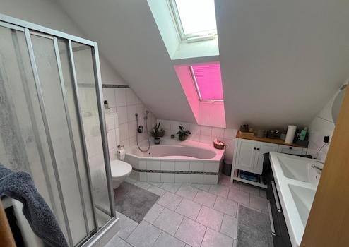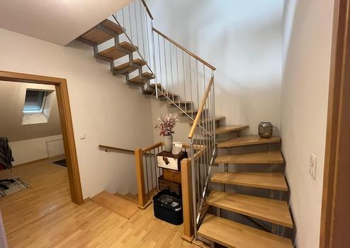 Über eine vollwertige Holz-/Stahltreppe erreichen Sie den ausgebauten Spitzboden, der zusätzlichen Platz für Gäste, Arbeiten oder Hobbys schafft. Mehrere Dachfenster, teilweise elektrisch, sorgen hier für viel Licht und eine freundliche Atmosphäre.