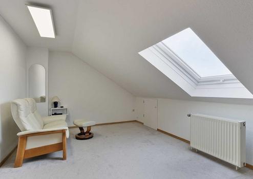 Das Obergeschoss verfügt über mehrere gut geschnittene Zimmer, die sich flexibel als Kinderzimmer, Schlafzimmer oder Ankleidezimmer nutzen lassen. Zudem befindet sich hier das Badezimmer mit Dusche und Badewanne. Das wohnlich genutzte Dachgeschoss bietet ein bis zwei weitere Zimmer und eignet sich ideal als Hobbyraum.