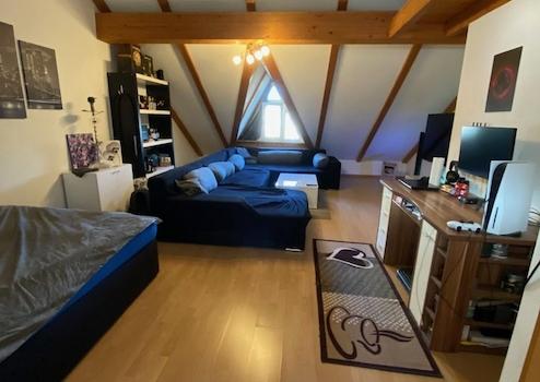 - Dachgeschoss: Ein firsthohes Studio (33,47 m²) eignet sich als Arbeits-, Hobby- oder zusätzlicher Wohnraum. Dort gibt es einen begehbaren Kleiderschrank und ein mit allen Anschlüssen versehenes weiteres Zimmer, das als kleines Badezimmer ausgebaut werden kann, mit Dachfenster (auch als Büro nutzbar).