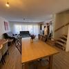 - Erdgeschoss: Heller Wohn- und Essraum mit Parkettfußboden (33,98 m²) und mit direktem Zugang zu einer sonnigen Terrasse (6,5 m²). Angrenzend befindet sich die Küche (10,11 m²) sowie Gäste-WC mit Tageslicht, Flur und Garderobe. Sämtliche Türen und Zargen in Echtholz-Eiche mit Oberlichtern. Voll eingerichtete Einbauküche.