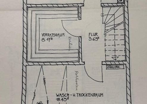- Keller: Stauraum und Nutzfläche mit einem Heiz- und Hobbyraum (21,51 m²), Vorratsraum (8,17 m²) sowie Wasch- und Trockenraum (18,43 m²).