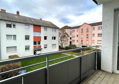 Der schöne Balkon mit Blick ins ruhige Wohnumfeld lädt zum Entspannen ein und erweitert den Wohnraum an warmen Tagen.