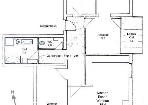 Die Wohnung wurde 2020 saniert bzw. modernisiert und dann 4,5 Jahre genutzt. Sie ist mit überschaubarem Aufwand auf den Stand 2020, wohnfertig, "wie frisch modernisiert", zu bringen.