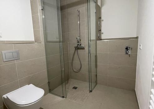• Bodengleich geflieste Dusche mit Glasduschwand