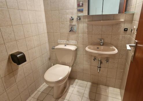 - Gäste WC, hochwertige Steingutfliesen in Deckenhöhe