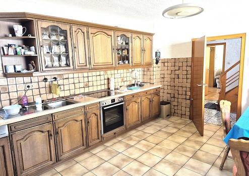 - Beheizt wird das Wohnhaus durch eine Kombination aus Öl-Zentralheizung (1997, Buderus, 3 × 2000 Liter Kunststofftanks) und Holzheizung (Scheitholz aus 2007). Die Rohrleitungen im Haus und die Heizkörper wurden vor wenigen Monaten erneuert. (Leitungen auf Putz)