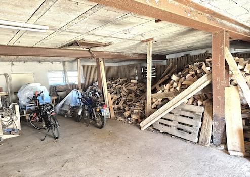 - Schuppen/Garage für landwirtschaftliche Maschinen mit Grube (15 × 8 Meter)