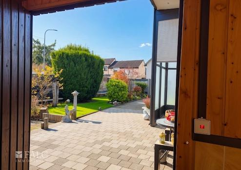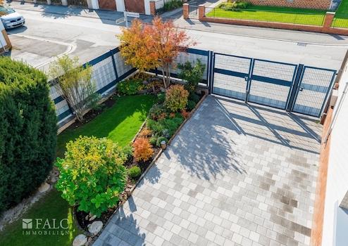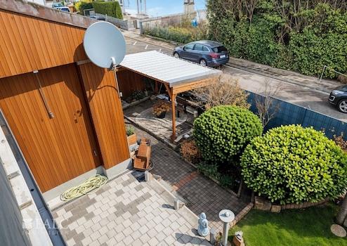 Der Außenbereich des Hauses besticht durch einen gepflegten, kompakten Garten.