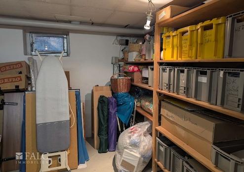 Im Untergeschoss des Hauses befindet sich ein großer Hauswirtschaftsraum. Mehrere separate Kellerräume bieten zusätzlichen Stauraum und Platz für Haushaltsgeräte, Lagerraum. Der gesamte Keller ist gefliest. Die Heizungsanlage sowie Heizöltanks befinden sich hier ebenso.