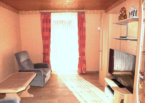 Wohnzimmer mit Anschluss zum Fernsehempfang und direkten Zugang zur Süd-West Terrasse